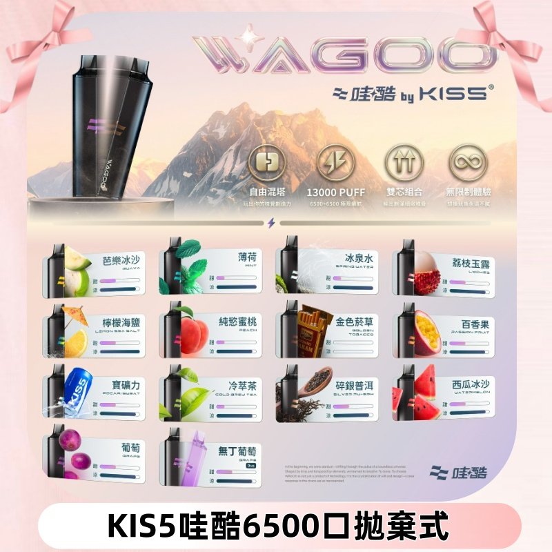 Kis5電子煙 Kiss拋棄式哇酷|WAGOO6500口一次性電子煙